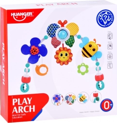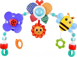 Deze kleurrijke speelboog is ontworpen om eenvoudig aan de kinderwagen, wieg en autostoel te worden bevestigd. Dankzij de verstelbare hoek pas je hem gemakkelijk aan de behoeften en houding van je baby aan. De hangende elementen met rammelaars en verschillende texturen nodigen uit tot ontdekken, grijpen en reiken met de handjes.