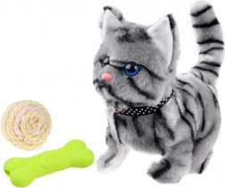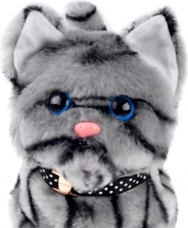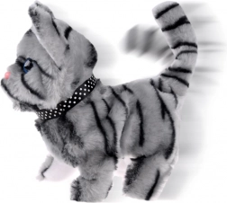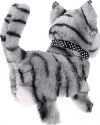 De interactieve kat in grijs tijgerdesign heeft een heerlijk zachte pluchen vacht, blauwe ogen en een schattig roze neusje. De stijlvolle, gestippelde halsband geeft een realistische uitstraling. Het speelgoed is perfect voor de ontwikkeling van fantasie en fijne motoriek en biedt kinderen veel plezier, thuis en onderweg.