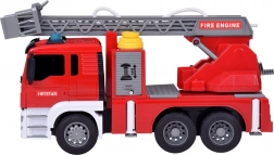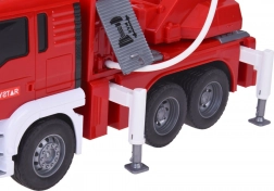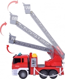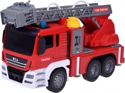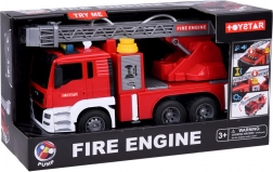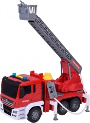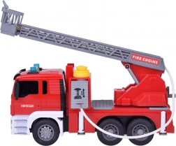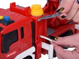 Deze gedetailleerde brandweerwagen verrukt kleine helden met realistische functies – van de echte waterpomp met slang tot brandende zwaailichten en sirene, en de handmatig uitschuifbare en verstelbare ladder. Dankzij de wrijvingsaandrijving rijdt de wagen zonder batterijen; lichten en geluiden worden gevoed door de meegeleverde batterijen.