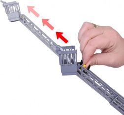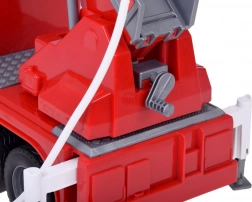De stevige kunststofconstructie in levendige kleuren, rubberen banden voor betere grip en zijkoffers en uitschuifbare steunpoten geven het spel extra authenticiteit. De 360° draaibare giek en het praktische vak voor de slang stimuleren fijne motoriek, fantasie en samenspel.