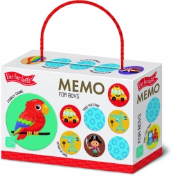 De speelset bevat 28 ronde kaartjes die speciaal zijn ontworpen voor jongens. Het memoryspel is niet alleen leuk, maar ook educatief, omdat het helpt het geheugen en de aandacht van uw kinderen te ontwikkelen.