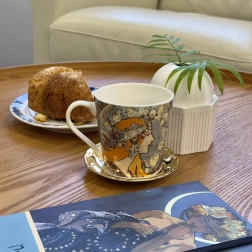 Ontdek de charme van de art nouveau met een mok geïnspireerd op het werk ALFONS MUCHA – Zodiak. De precieze print met verfijnde lijnen, bloemmotieven en een vrouwelijk portret verandert elk pauzemoment in een esthetische beleving. De mok is gemaakt van hoogwaardig porselein, voelt prettig aan en houdt warmte goed vast.