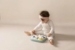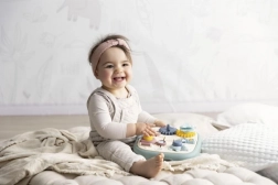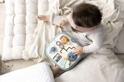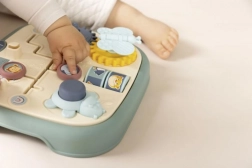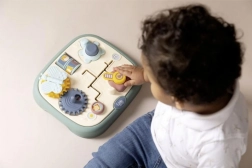 Motorische plaat voor kinderen met vijf originele activiteiten zoals een labyrint, tandwielen, rollen en een knop. Helpt bij het ontwikkelen van motorische vaardigheden en biedt een comfortabele grip dankzij de handvatten.