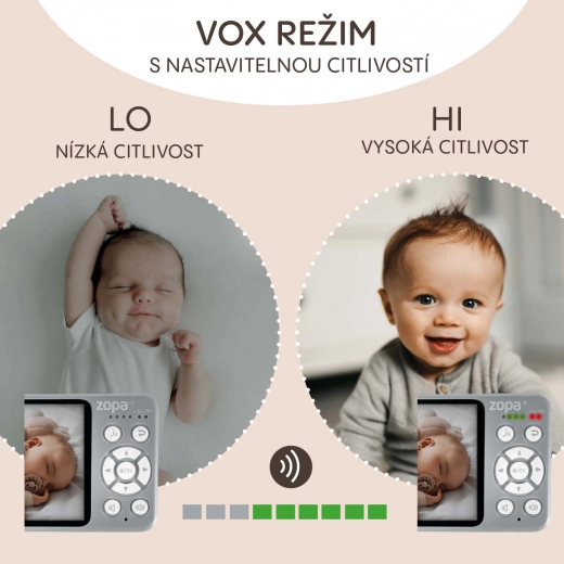 Stel je kindje gerust met je eigen stem of speel kalmerende melodieën af voor een aangename in slaap val. De geïntegreerde thermometer helpt je ideale slaapomstandigheden te creëren met weergave van de actuele temperatuur en waarschuwing bij overschrijding. De zuinige nachtmodus schakelt de transmissie automatisch uit wanneer het stil is in de kamer en activeert zich opnieuw bij elk geluid.