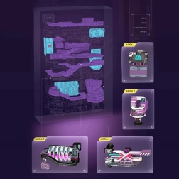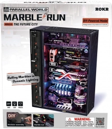 Creëer thuis een pulserend sci-fi panorama met snelle afdalingen tussen wolkenkrabbers, leidingen en fabrieken. De automatische lift brengt de knikkers terug naar de start en de neon-LED-verlichting geeft het geheel een cyberpunk-sfeer. Met één knop wissel je tussen “drukke dag” en “kleurrijke nacht”.