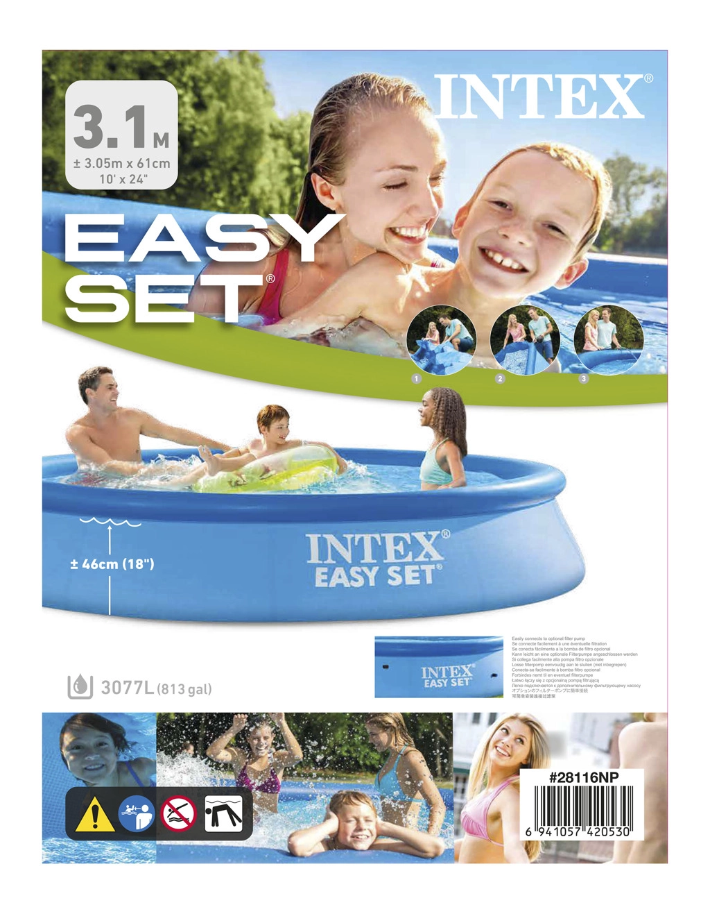 Een praktische oplossing voor hete dagen in je tuin. Het INTEX Easy Set zwembad is ontworpen voor een snelle en comfortabele ingebruikname zonder ingewikkelde installatie. Dankzij de zelfdragende constructie komt het zwembad omhoog naarmate het met water wordt gevuld en is het in een mum van tijd klaar voor verfrissing. De binnenzijde met blauw-witte mozaïekprint geeft het water een frisse en aangename uitstraling.