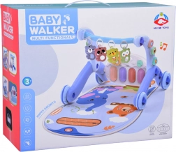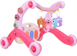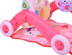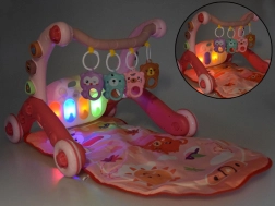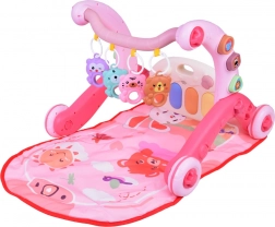 De multifunctionele 3-in-1 set groeit met je kind mee: van comfortabel spelen op de zachte mat, via het ontdekken van geluiden op het oplichtende pianootje, tot de eerste stapjes met de stabiele duwwalker. De kleurrijke hangspeeltjes en pastelblokjes voor de sorteerder ondersteunen grijpen, oog-handcoördinatie en het herkennen van vormen en kleuren.