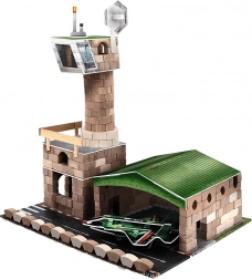 Bouw je eigen militaire luchthaven met deze unieke bouwset! Met echte kleien bakstenen en houten elementen maak je een indrukwekkende constructie die je kunt versieren met decoraties en aanvullen met papieren figuurtjes.