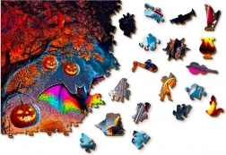 De houten puzzel WOODEN CITY Halloween-pompoen biedt een unieke legervaring. Dankzij de nauwkeurige laseruitsnede hebben de stukjes gladde randen en sommige zijn gevormd als dieren – ze kunnen zelfs op zichzelf staan als kleine figuurtjes. De gevarieerde vormen verhogen de moeilijkheid en zorgen voor langer, bevredigender puzzelplezier.