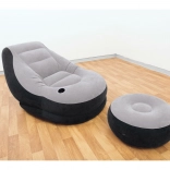 Comfortabele opblaasbare fauteuil met voetenbank, ideaal voor gebruik binnen en buiten. Biedt ultiem comfort voor ontspannen momenten.