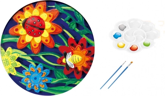 Creatieve set voor kleine kunstenaars, waarmee je kind een eigen 3D-plaat van gips met bloemmotief kan maken. Ondersteunt de ontwikkeling van creativiteit, fijne motoriek en leuk kleuren mengen.