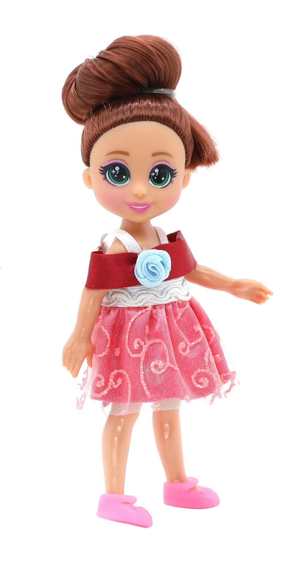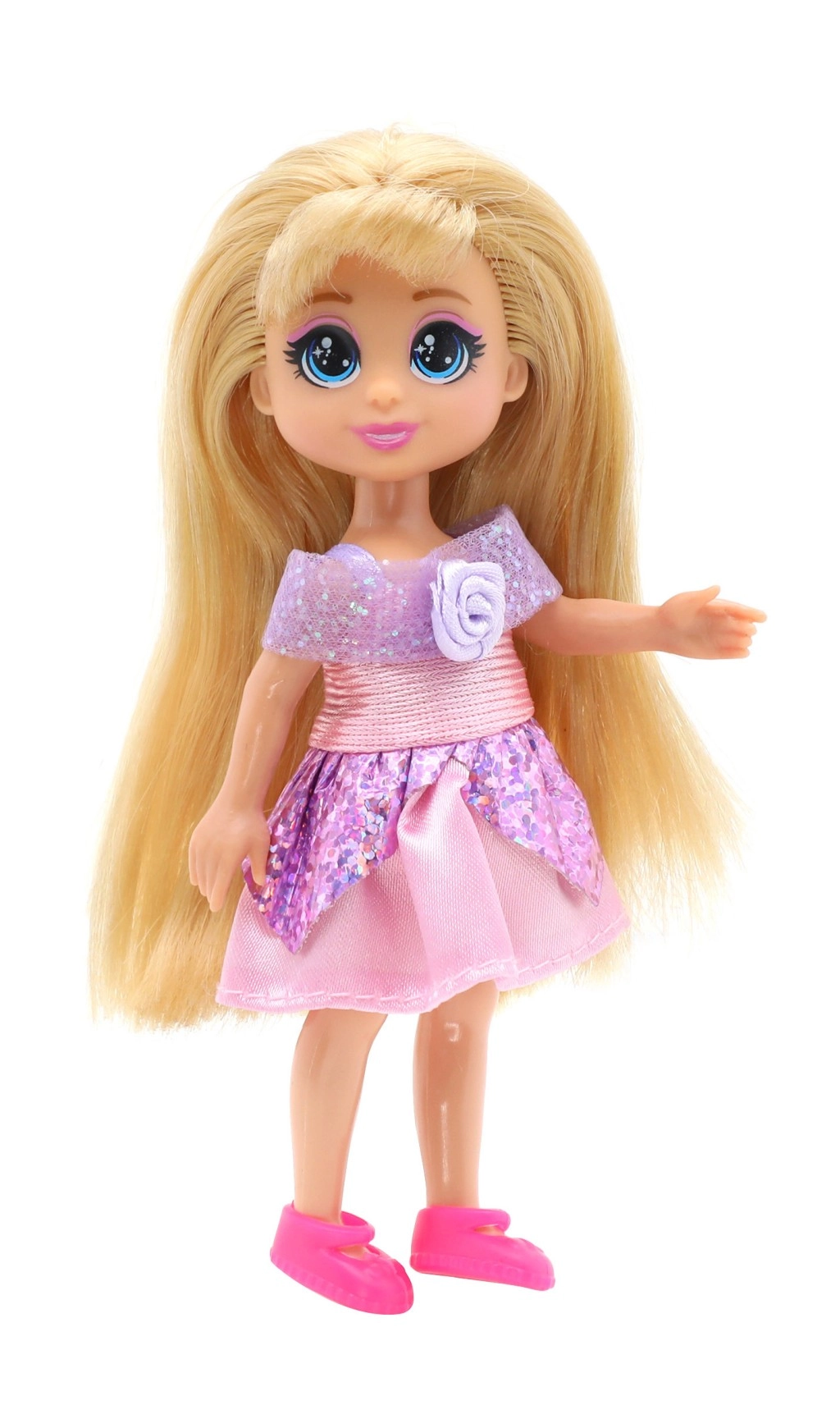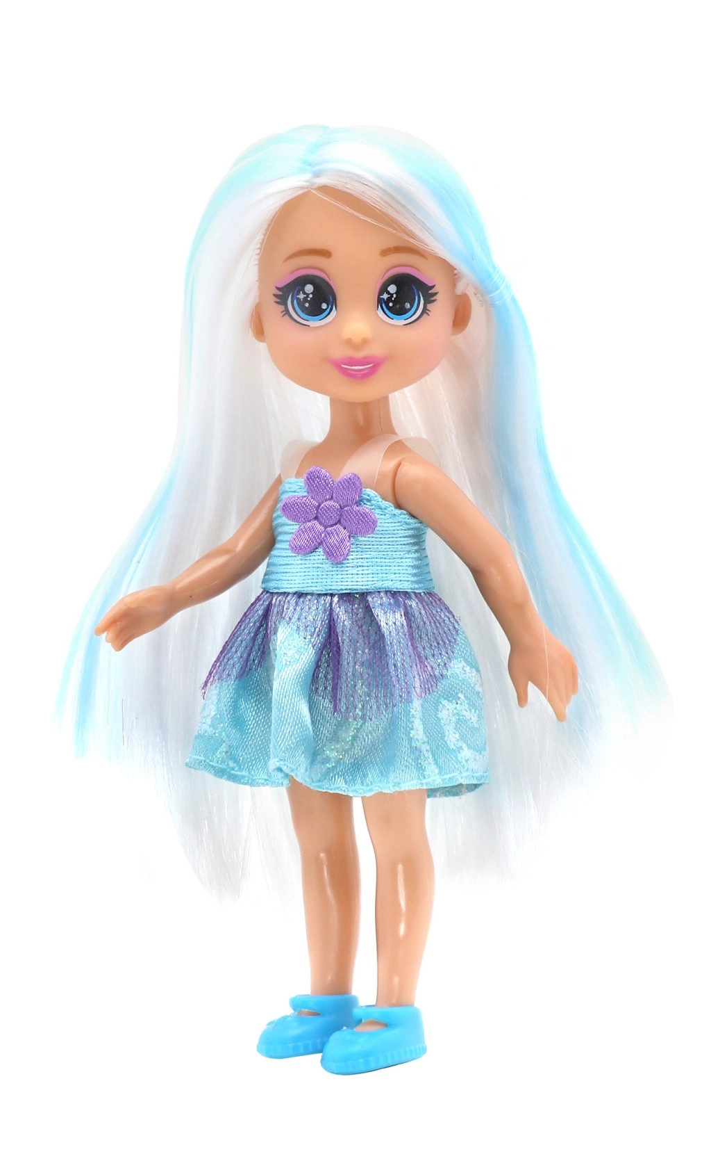 Dreameez mini prinses in een hoorntje is de ideale metgezel voor kleine sprookjesliefhebbers. Deze schattige pop is ongeveer 12 cm groot en draagt een elegante prinsessenoutfit. Ze heeft lang haar dat kinderen kunnen kammen en stylen naar eigen fantasie, wat uren creatief speelplezier biedt.