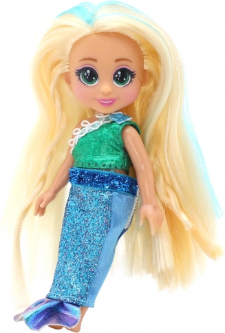 Deze schattige mini-pop is ontworpen voor kleine fantasyliefhebbers. Ze heeft lange, kleurrijke lokken die gemakkelijk te kammen en te stylen zijn, en een charmante outfit geïnspireerd op zeemeerminnen. De hoorntjesverpakking geeft een cadeau-effect en maakt de pop tot een geweldige keuze als beloning of klein presentje.