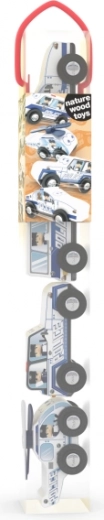 Ontdek het speelplezier met politiewagens gemaakt van natuurlijk hout. Dit speelgoed prikkelt de verbeelding van kinderen en ondersteunt rollenspel en het vertellen van verhalen. - Hoogwaardig natuurlijk hout: Elk voertuig is gemaakt van milieuvriendelijk materiaal dat vriendelijk is voor het milieu. - Ondersteunt de ontwikkeling: Het speelgoed helpt fijne motoriek en oog-handcoördinatie te ontwikkelen terwijl kinderen verschillende manieren van bewegen met de voertuigen ontdekken. - Inspiratie voor creativiteit: Stimuleert kinderen om zich in te laten met creatieve spelvormen, wat essentieel is voor hun ontwikkeling. Deze set bevat meerdere voertuigen en is ideaal voor kleine politieagenten in opleiding.