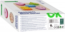 De houten geometrische sorteerder van TOOKY TOY is een ideale educatieve tool voor jonge ontdekkers. Vijf pinnen en kleurrijke vormen (cirkels, driehoeken, vierkanten, rechthoeken en vijfhoeken) leren kinderen vormen, kleuren en aantallen onderscheiden. Elk onderdeel moet op de juiste uitstulping passen, waardoor op speelse wijze logica, geduld en fijne motoriek worden versterkt.