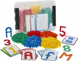 Ontdek de creatieve bouwset Plus-Plus die plezier en leren combineert. Dankzij 2400 stukjes en 160 kaarten met voorgedrukte sjablonen (letters A–Z en cijfers 0–9) leggen kinderen eenvoudig vormen op schaal 1:1, oefenen ze fijne motoriek, oog-handcoördinatie en herkennen ze vormen, kleuren en symbolen. De bijgevoegde opdrachtenbrochure biedt kant-en-klare activiteiten voor individueel en groepswerk.