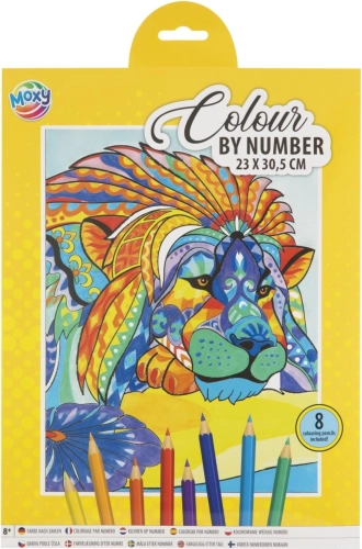 Geniet stressvrij van creatief bezig zijn met de schilderen op nummer set met een leeuw als motief. Bevat een gedetailleerde afbeelding van 23 × 30,5 cm en 8 kleurpotloden – koppel de nummers aan de kleuren en er ontstaat een prachtig kleurrijk beeld.