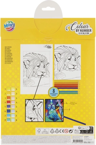 Deze creatieve set biedt een makkelijke en leuke manier om thuis een indrukwekkend beeld van een majestueuze leeuw te maken. Op het sjabloon zijn vlakken met nummers aangegeven; aan elk nummer koppel je een kleur uit de meegeleverde 8 kleurpotloden en stap voor stap kleur je de gedetailleerde afbeelding in van 23 × 30,5 cm.