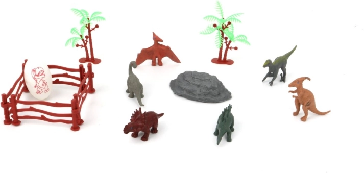 - dinosaurussen, planten en overige accessoires (bijv. boompjes, rots, omheining)