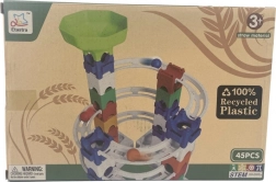 Bouw je eigen knikkerbaan met 45 onderdelen en laat de knikkers razen over creatieve routes! Het speelgoed stimuleert creativiteit, verbeeldingskracht en fijne motoriek. Gemaakt van natuurlijke materialen en 100% gerecycled plastic.