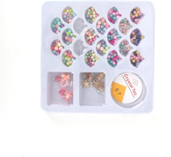 Dankzij het meegeleverde elastische koord is rijgen eenvoudig en snel. Alles is overzichtelijk gerangschikt in vakjes, zodat je kleuren en vormen gemakkelijk kunt combineren en armbanden, kettingen of hangers kunt maken, precies zoals jij ze wilt.