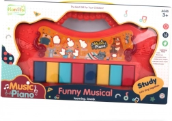 Felgekleurde toetsen in geel, rood en blauw zorgen voor een vrolijke sfeer en ondersteunen muzikale ontwikkeling.