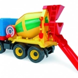 Het speelgoed is uitgerust met een beweegbare betonmolen en een functionele schuif voor creatief spel.