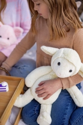 Het lammetje is gemaakt van aangenaam pluche, ideaal om mee te knuffelen en te omarmen.