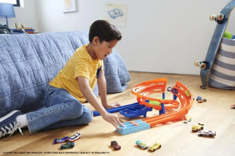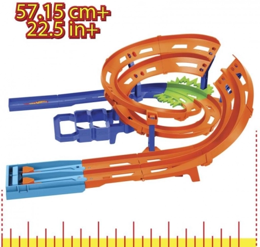 Beleef de spanning met de Hot Wheels racebaan, met parallelle races en acrobatische sprongen met twee auto's op schaal 1:64. Makkelijk op te bergen en draagbaar. Meer tonen