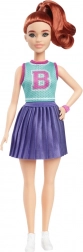 De gepresenteerde Barbie pop heeft rossig haar in een zijstaart en inspireert met haar sportieve-frisse outfit tot het verkennen van modetrends. Ze draagt een turquoise top met een grote 'B' en een schattige paarse geplooide rok, die wordt aangevuld met witte sneakers en een roze armband.