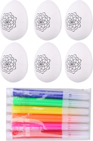 Deze leuke set biedt alles wat kinderen nodig hebben om originele paaseieren te maken. De eieren hebben een glad wit oppervlak dat klaar is om te schilderen, over te trekken en verder te decoreren. Dankzij de meegeleverde stiften in zes kleuren kunnen kinderen meteen beginnen en hun creativiteit ontwikkelen.