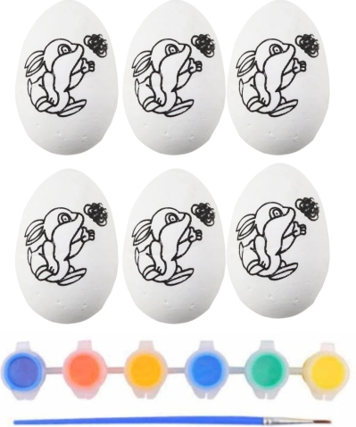 - Complete set: 6 eieren, 6 kleuren, penseel