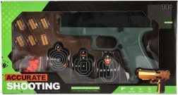 In de set vind je een pistool, kogels en doelwitten, alles wat je nodig hebt voor een spannende schiettraining.