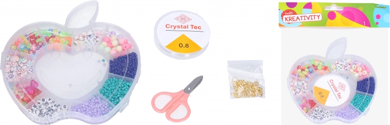 Kralenset Appel biedt alles wat je nodig hebt om je eigen kettingen en armbanden te maken. De set is perfect voor creatief knutselen en bevat kralen, touw, een schaar en sluitingen.