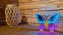 De stijlvolle decoratieve LED NEON-lamp Vlinder verlicht de kinderkamer, slaapkamer of woonkamer met een zachte, kleurrijke gloed. Hij is ontworpen voor gebruik binnenshuis en combineert een moderne look met praktische USB-voeding, zodat je geen batterijen hoeft te vervangen.
