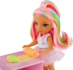 Beleef zoete avonturen met de schattige pop uit de RAINBOW HIGH LITTLES-collectie en haar stijlvolle banketbakkerij. Het keukentje met oven, vormpjes en ijsdispenser biedt talloze manieren om kleurrijke lekkernijen te maken en de creativiteit en fijne motoriek van kinderen te ontwikkelen. Dankzij de vijf kleuren boetseerklei kunnen kinderen croissantjes bakken, cupcakes versieren en zelfs ijs “draaien”.