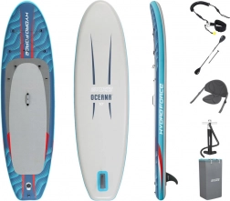 Het model OCEANA 2-in-1 combineert comfort, stabiliteit en veelzijdigheid. Het duurzame FortiFiber drop-stitch materiaal met duizenden interne vezels geeft het board een hoge stijfheid vergelijkbaar met harde SUP’s, terwijl het licht blijft en gemakkelijk op te bergen is. De antislip diamantstructuur zorgt voor een zekere stand en goede controle, ook voor beginners.