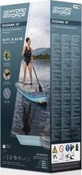 De veelzijdige opblaasbare paddleboard HYDRO-FORCE OCEANA 2-in-1 is ideaal voor recreatief peddelen en langere tochten. Dankzij de stevige drop-stitch constructie is hij licht, stijf en stabiel, en toch eenvoudig in een rugzak te vervoeren. Je verandert hem in een oogwenk in een kajak met zitje en rugleuning. Verder aanwezig: een antislip sta-oppervlak, afneembare vinnen, veiligheidsleash en ruime mogelijkheden voor opbergen van uitrusting.