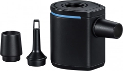 Dankzij de luchtstroom van 90 l/min kan de pomp snel opblazen en leegzuigen. De bediening is intuïtief – je hebt slechts één knop nodig. Met drie opzetstukken past hij op de meeste gangbare ventielen van luchtmatrassen, zwemringen, ligbedden en kampeermatten.
