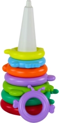 Het stapelen van ringen van groot naar klein leert kinderen sorteren op grootte, traint geduld en stimuleert creatief spel. De felle kleuren en het aantrekkelijke giraffemotief houden de aandacht vast, terwijl kleine ontdekkers hun vingervaardigheid oefenen.