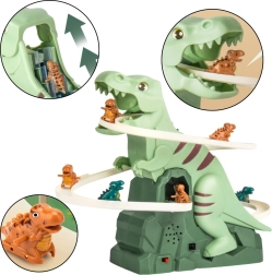 Deze dinosaurus-achtbaan biedt kinderen een spannende rit met een elektrisch mechanisme dat zorgt voor automatisch omhoog rijden op de baan en vervolgens een snelle afdaling. Kleurrijke LED-lampjes en muzikale begeleiding versterken de beleving en ondersteunen de zintuiglijke ontwikkeling.