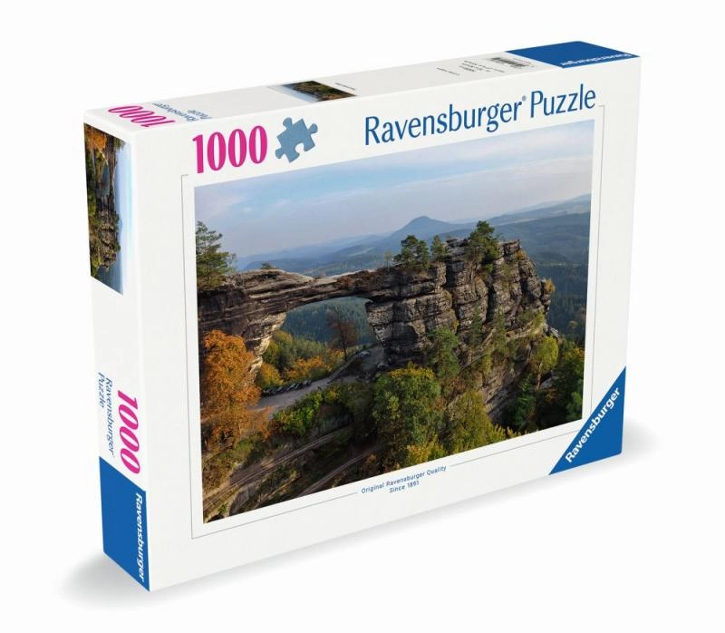 Ontdek de charme van Boheems Zwitserland met deze hoogwaardige RAVENSBURGER-puzzel van 1000 stukjes. Dankzij de precieze uitsnede en het stevige materiaal passen de stukjes perfect, zodat je kunt genieten van vloeiend legplezier zonder frustratie en met het adembenemende motief van de Pravčická brána.