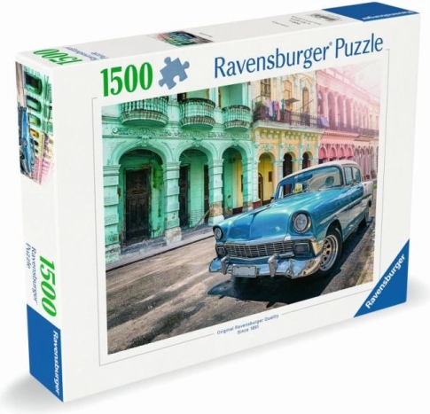 Ontdek de sfeer van de Cubaanse straten met deze hoogwaardige Ravensburger-puzzel van 1500 stukjes. De stukjes zijn precies, duurzaam en passen perfect in elkaar, zodat je geniet van vloeiend leggen zonder kieren en een scherp, gedetailleerd beeld met een motief van klassieke auto’s.