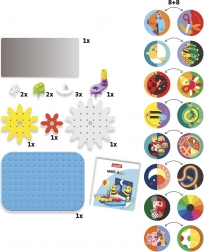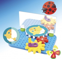 Ontdek een speelse bouwset met spiegel, waarbij elke draai aan het tandwiel magische visuele effecten creëert. QUERCETTI MIRRORELLO bevordert de fijne motoriek, creativiteit en logisch denken van kinderen vanaf 4 jaar dankzij kleurrijke tandwielen, een slinger en geïllustreerde schijven die in de spiegel veranderen in fascinerende beelden.