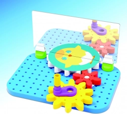 Het draaien aan de slinger, het plaatsen van tandwielen en het wisselen van schijven ontwikkelen de fijne motoriek, coördinatie en logisch-combinatorisch denken van kinderen.