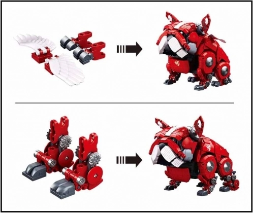 De rode mechanische bulldog van het merk Sluban zal alle kleine en grote bouwers blij maken. Het model van hoogwaardige ABS-kunststof heeft bewegende onderdelen, zodat kinderen niet alleen genieten van het bouwen zelf, maar ook van het daaropvolgende spelen. De onderdelen passen precies en dankzij de compatibiliteit kun je gemakkelijk aanvullen met stenen van andere merken.