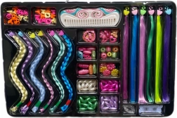 Word een haarontwerpster en maak je eigen unieke haarversiering precies zoals jij wilt! Met deze set kun je kralen rijgen, een haarlokje bevestigen en je haar versieren zodat het nog mooier wordt.