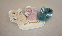 Geef je baby een gevoel van rust en veiligheid met deze set, met niet alleen een pluchen konijntje met een elegante strik, maar ook schoentjes met een print van konijnenoortjes en een geborduurd gezichtje.