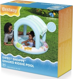 Schattig kinderzwembad van Bestway met overkapping en een zachte, opblaasbare bodem – ideaal voor kleine liefhebbers van zomers waterplezier. Voorzien van aantrekkelijke graphics met populaire zoetigheden die kinderen meteen aanspreken.