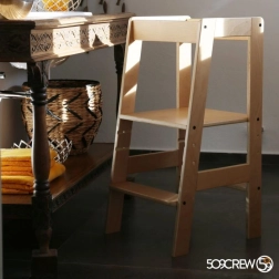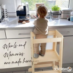 De toren is universeel ontworpen om bij de meeste keukenbladen of badkamerwastafels te passen en is gemaakt van materialen zonder formaldehyde. Ideaal voor kinderen van 18 tot 48 maanden.